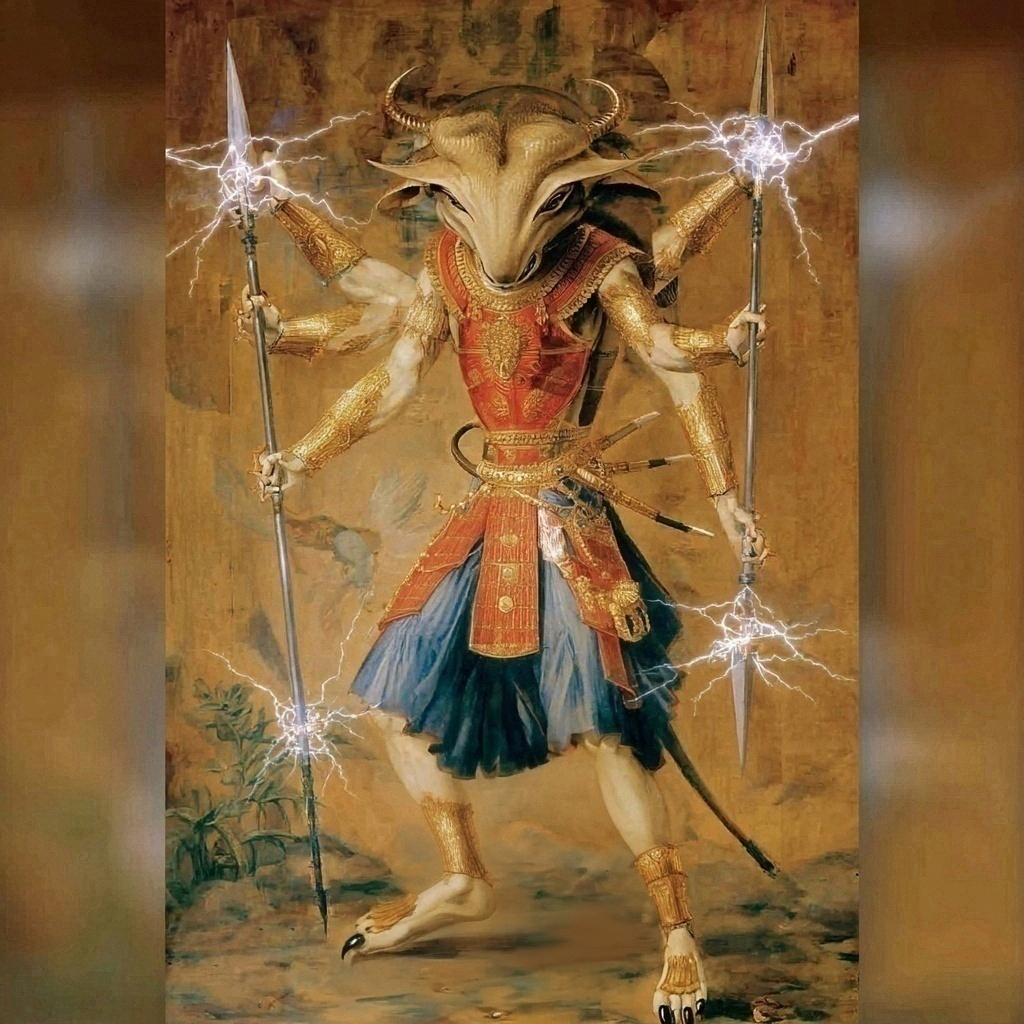 Avalzant travels at will through ultimate dimensions, through gulfs unpermitted to lesser beings. He can instantly assume any form desired and can appear simultaneously on more than one world. He has traveled to Polaris, Achemar, and distant galaxies. When he appeared before Oliver Woadley, Avalzant first appeared as a cluster of glowing motes that condensed into a figure a bit taller than a man. He had four arms and a torso covered in armor like plates of ruby. Each hand had seven fingers, and one carried a short spear with a long blade that emitted electric sparks. He had two legs with golden greaves about the calves and four-clawed feet in blue sandals. His head was cone-shaped with outward-curving horns and a long, sharp, semi-translucent chin. His brow was enormous, and his blue-green eyes were widely spaced, with drooping lids and inner fires. The mouth was cruel and downturned. His complexion varied rapidly between white, black, and red. He spoke mentally, without moving his lips. |