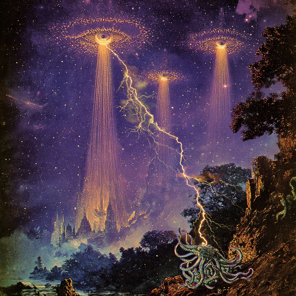 one awful moment everything was revealed—before lightning-like appendages descended as from the heart of the blinding pillar of light itself, one seizing