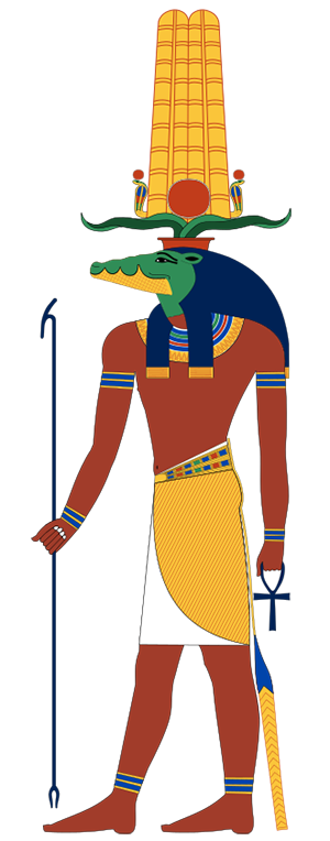 Sebek, according to reputable anthropologists, was a lesser deity of Inner Egypt; a fertility god of the Nile.[4] The Evil CultHowever, an Egyptian cult of priest-sorcerers viewed deities such as Sebek as hybrid beast-men who shambled on Earth in primal days.[2] Ludvig Prinn's Saracenic Rituals tells how this cult ruled the Pharaohs from behind the throne, and held the land in their grip.[4] According to Prinn, the priests of Sebek wore crocodile masks, in emulation of their Lord. They offered virgin maidens to be torn between the jaws of a golden crocodile.[4] In some cases, the crocodile was merely a statue with hinged and barbed jaws.[3] However, once a year Sebek himself appeared to the priests at Memphis in the form of a man with a crocodile head.[4] In return for these offerings, Sebek conferred strange powers on his priests.[3] After the pharaoh Nephren-Ka, the next pharaoh drove out the wicked priests.[2] They were driven from their temples, and their sanctuaries destroyed.[3] According to Doctor Stugatche, the evil priests were followers of the Faceless One (Nyarlathotep). After the cult was overthrown, Nyarlathotep's attributes were distributed among milder deities such as Sebek.[1] The Afterlife of Sebek's PriestsSebek's evil priests believed that he could grant eternal life. "He would guard them in their graves until the resurrection-cycle was completed, and he would destroy their enemies who sought to violate their sepulchers."[4] To facilitate resurrection, the evil priests were mummified with vital organs intact.[3] According to recognized authorities, only four mummies of Sebek's priesthood have ever been found. The finders of the mummies all died, one of them in the crocodile pit of the London Zoo.[4] Henricus Vanning smuggled a mummy of another of Sebek's priests to New Orleans for Professor Weildan. A crocodile-headed figure appeared and killed Vanning by biting his throat.[4] Later, Weildan persuaded the Secret of Sebek/Eyes of the Mummy narrator to help raid the tomb of another priest of Sebek in Egypt. The mummy's eyes had been replaced by yellow jewels that enabled it to swap its consciousness with people in other bodies. It transferred its consciousness to the narrator's body, and killed Weildan. The narrator briefly regained his own body, but then was trapped again in the mummy of the priest, which swiftly decayed.[3] Other ReferencesCaptain Cartaret felt that deities such as Sebek yet dwelt in the ruins of Thebes and Memphis, or bided in the crumbling tombs below the Valley of Kings.[2] James Allington used the Soul Chant of Sebek as a focal point to split his identity.[6] The Probilski Foundation had a statue of saurian-snouted Sebek.[5]